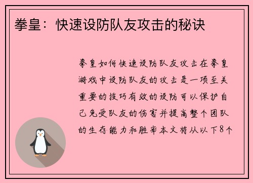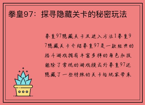 1. 简介 血战上海滩是一款经典的单机游戏,以上海滩黑帮为题材,玩家可以在游戏中扮演黑帮老大,体验黑帮江湖的刺激与挑战。在手机上找到这款游戏,可以让玩家重温经典,感受游戏的乐趣。本文将介绍如何在手机上找到血战上海滩游戏。 2. 应用商店 要找到血战上海滩游戏,首先可以在手机的应用商店中搜索。大部分手机都预装了应用商店,如App Store和Google Play。打开应用商店后,可以在搜索框中输入...