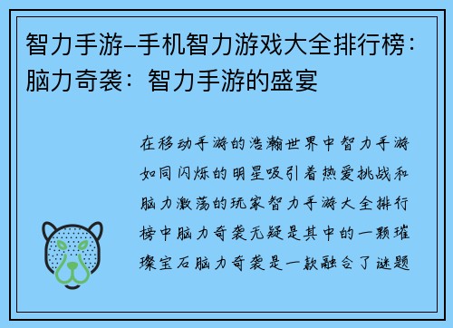 在电子游戏的世界里,回合制邂逅是让玩家参与一场智力与策略较量的神奇体验。随着移动设备的普及,回合制手游如雨后春笋般涌现,为玩家开启了一扇通往令人着迷的掌中世界的门户。 回合制的魅力 回合制游戏的核心在于轮流制战斗,玩家可以仔细规划每一步动作,思考如何优化攻击、防御和特殊能力的使用。这种基于策略的玩法为玩家提供了与对手斗智斗勇的快感,让每一次胜利都充满成就感。 手游的多样性 手游平台为回合制游戏提供...